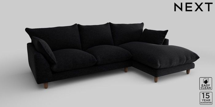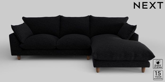 7.2.10 Noa Deep Relaxed Sit Medium Sofa Chaise - Right Hand Fine Chenille Easy Clean Black High Leg - Mid | Made Click here to use our website with more accessibility support, for example screen readers