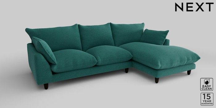 7.2.10 Noa Deep Relaxed Sit Medium Sofa Chaise - Right Hand Fine Chenille Easy Clean Dark Juniper Green High Leg - Dark | Made Click here to use our website with more accessibility support, for example screen readers