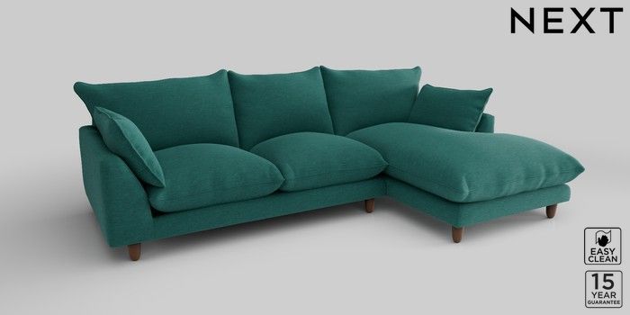 7.2.10 Noa Deep Relaxed Sit Medium Sofa Chaise - Right Hand Fine Chenille Easy Clean Dark Juniper Green High Leg - Mid | Made Click here to use our website with more accessibility support, for example screen readers