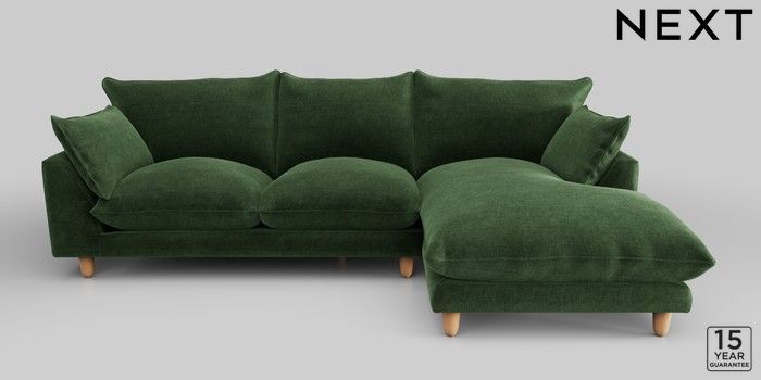 7.2.10 Noa Deep Relaxed Sit Medium Sofa Chaise - Right Hand Luxe Chenille Dark Green High Leg - Light | Made Click here to use our website with more accessibility support, for example screen readers