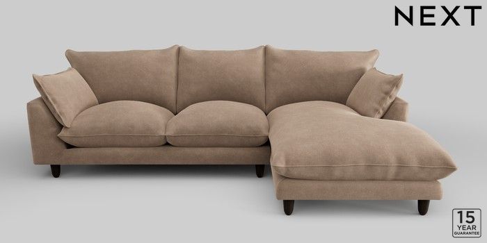 7.2.10 Noa Deep Relaxed Sit Medium Sofa Chaise - Right Hand Luxe Chenille Mid Natural High Leg - Dark | Made Click here to use our website with more accessibility support, for example screen readers