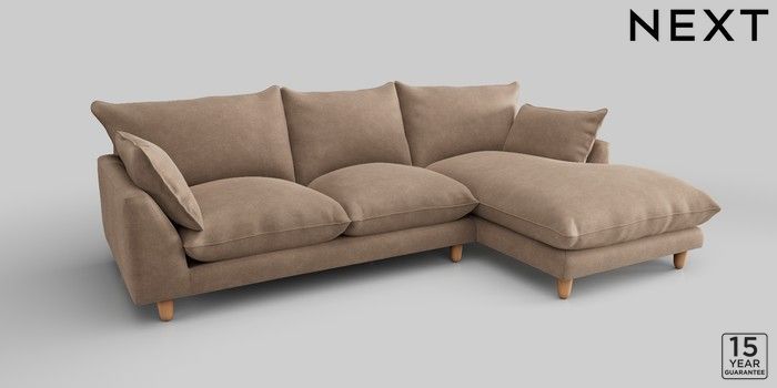 7.2.10 Noa Deep Relaxed Sit Medium Sofa Chaise - Right Hand Luxe Chenille Mid Natural High Leg - Light | Made Click here to use our website with more accessibility support, for example screen readers