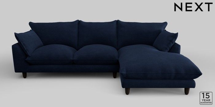 7.2.10 Noa Deep Relaxed Sit Medium Sofa Chaise - Right Hand Luxe Chenille Navy Blue High Leg - Dark | Made Click here to use our website with more accessibility support, for example screen readers