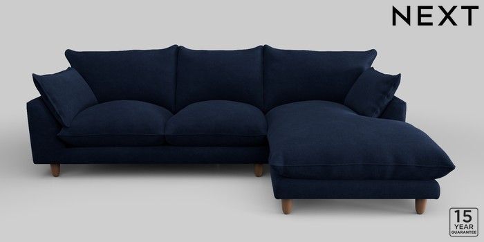 7.2.10 Noa Deep Relaxed Sit Medium Sofa Chaise - Right Hand Luxe Chenille Navy Blue High Leg - Mid | Made Click here to use our website with more accessibility support, for example screen readers