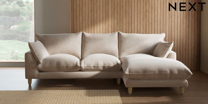 7.2.10 Noa Deep Relaxed Sit Medium Sofa Chaise - Right Hand Multi Weave Mid Natural High Leg - Light | Made Click here to use our website with more accessibility support, for example screen readers