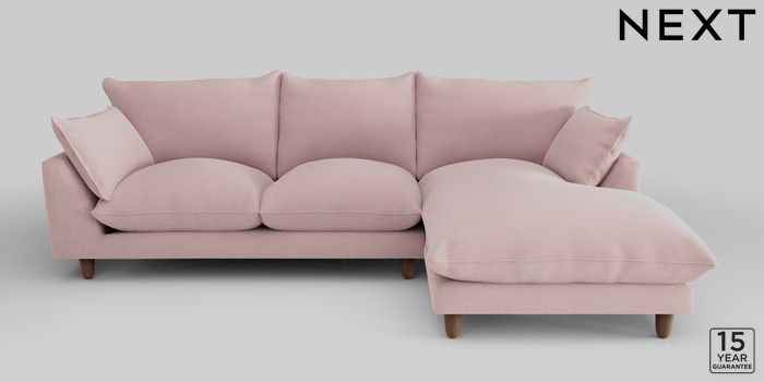 7.2.10 Noa Deep Relaxed Sit Medium Sofa Chaise - Right Hand Natural Mix Light Rose Pink High Leg - Mid | Made Click here to use our website with more accessibility support, for example screen readers