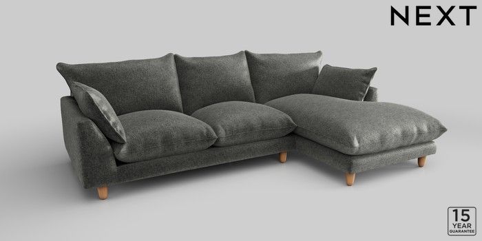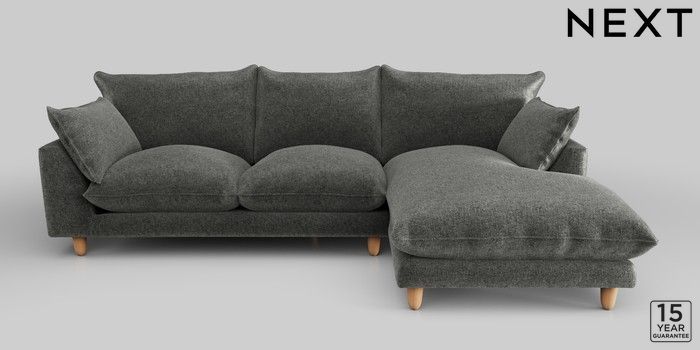 7.2.10 Noa Deep Relaxed Sit Medium Sofa Chaise - Right Hand Plush Chenille Dark Grey High Leg - Light | Made Click here to use our website with more accessibility support, for example screen readers
