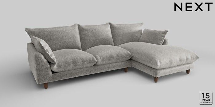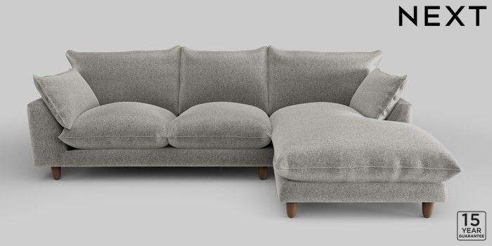 7.2.10 Noa Deep Relaxed Sit Medium Sofa Chaise - Right Hand Plush Chenille Light Grey High Leg - Mid | Made Click here to use our website with more accessibility support, for example screen readers