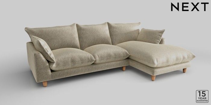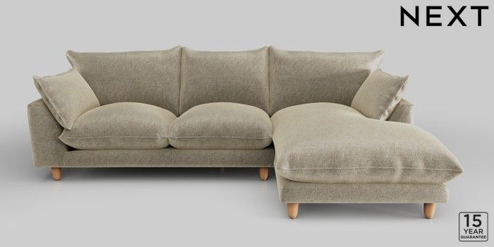 7.2.10 Noa Deep Relaxed Sit Medium Sofa Chaise - Right Hand Plush Chenille Light Natural High Leg - Light | Made Click here to use our website with more accessibility support, for example screen readers