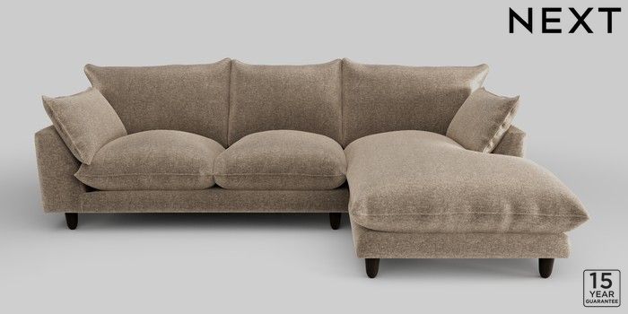 7.2.10 Noa Deep Relaxed Sit Medium Sofa Chaise - Right Hand Plush Chenille Mid Natural High Leg - Dark | Made Click here to use our website with more accessibility support, for example screen readers