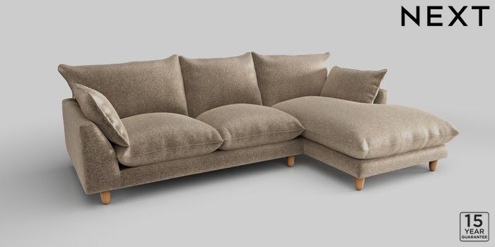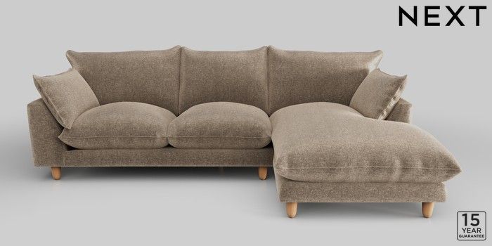 7.2.10 Noa Deep Relaxed Sit Medium Sofa Chaise - Right Hand Plush Chenille Mid Natural High Leg - Light | Made Click here to use our website with more accessibility support, for example screen readers