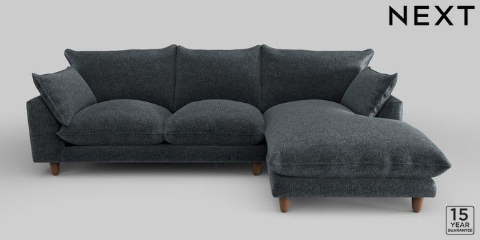 7.2.10 Noa Deep Relaxed Sit Medium Sofa Chaise - Right Hand Plush Chenille Slate Blue High Leg - Mid | Made Click here to use our website with more accessibility support, for example screen readers