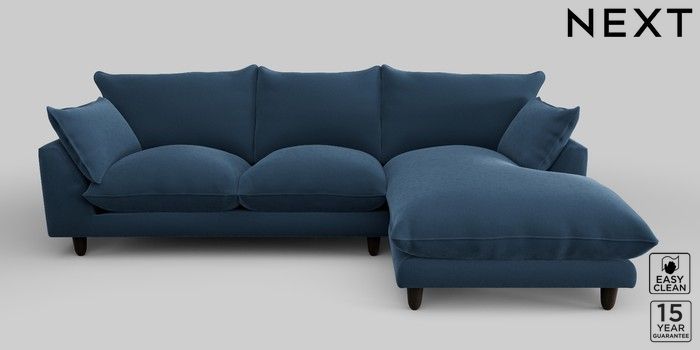 7.2.10 Noa Deep Relaxed Sit Medium Sofa Chaise - Right Hand Plush Velvet Easy Clean Airforce Blue High Leg - Dark | Made Click here to use our website with more accessibility support, for example screen readers