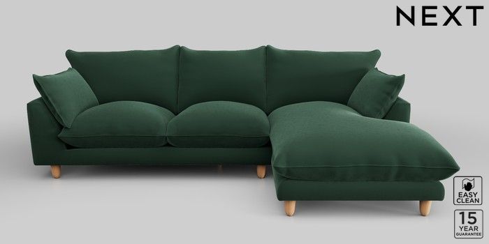 7.2.10 Noa Deep Relaxed Sit Medium Sofa Chaise - Right Hand Plush Velvet Easy Clean Bottle Green High Leg - Light | Made Click here to use our website with more accessibility support, for example screen readers