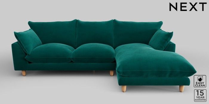7.2.10 Noa Deep Relaxed Sit Medium Sofa Chaise - Right Hand Plush Velvet Easy Clean Juniper Green High Leg - Light | Made Click here to use our website with more accessibility support, for example screen readers