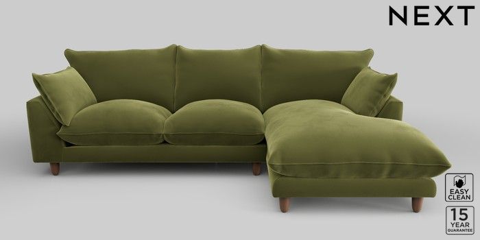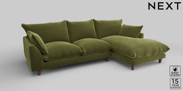 7.2.10 Noa Deep Relaxed Sit Medium Sofa Chaise - Right Hand Plush Velvet Easy Clean Mid Olive Green High Leg - Mid | Made Click here to use our website with more accessibility support, for example screen readers