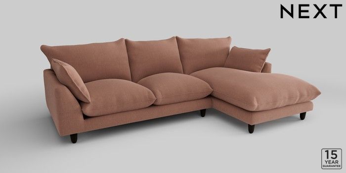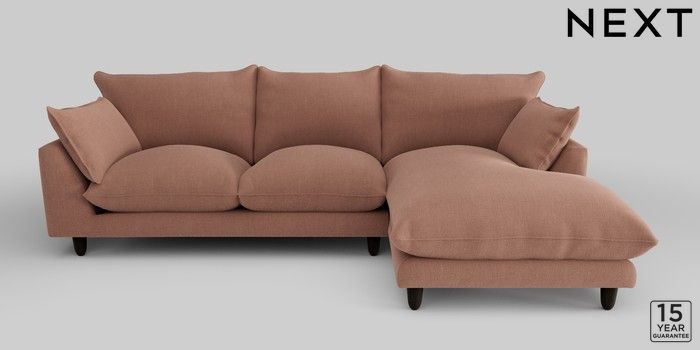 7.2.10 Noa Deep Relaxed Sit Medium Sofa Chaise - Right Hand Relaxed Linen Look Light Rust Brown High Leg - Dark | Made Click here to use our website with more accessibility support, for example screen readers