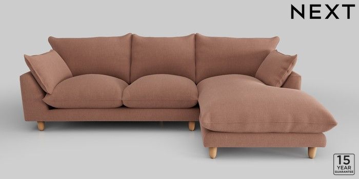 7.2.10 Noa Deep Relaxed Sit Medium Sofa Chaise - Right Hand Relaxed Linen Look Light Rust Brown High Leg - Light | Made Click here to use our website with more accessibility support, for example screen readers