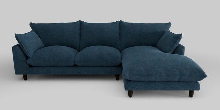 7.2.10 Noa Deep Relaxed Sit Medium Sofa Chaise - Right Hand Ripple Chenille Dark Blue High Leg - Dark | Made Click here to use our website with more accessibility support, for example screen readers