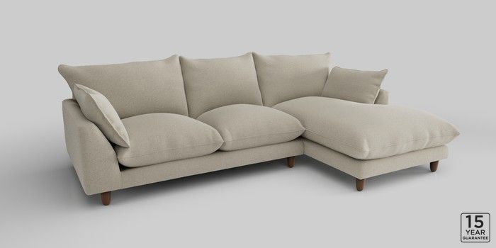 7.2.10 Noa Deep Relaxed Sit Medium Sofa Chaise - Right Hand Ripple Chenille Light Natural High Leg - Mid | Made Click here to use our website with more accessibility support, for example screen readers