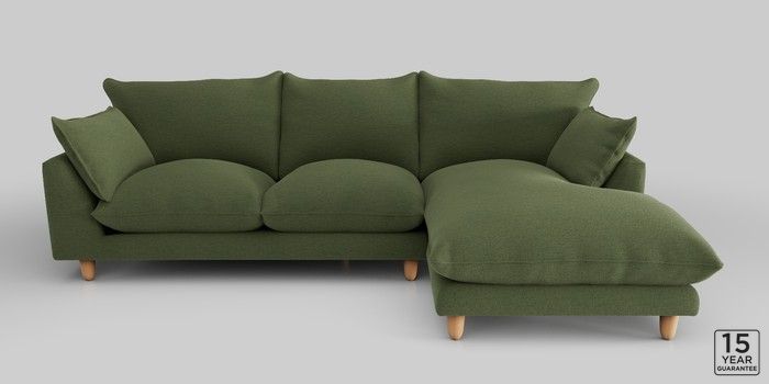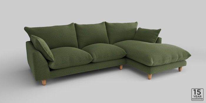 7.2.10 Noa Deep Relaxed Sit Medium Sofa Chaise - Right Hand Ripple Chenille Mid Moss Green High Leg - Light | Made Click here to use our website with more accessibility support, for example screen readers