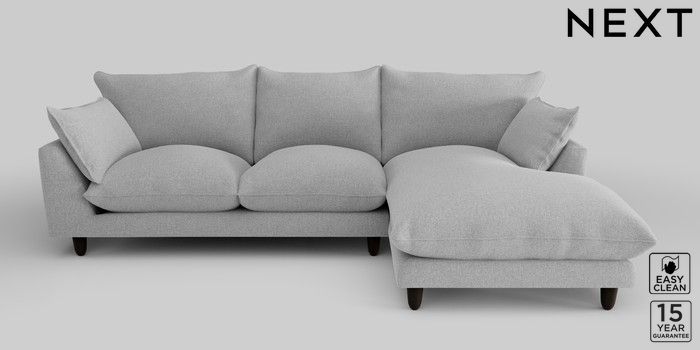 7.2.10 Noa Deep Relaxed Sit Medium Sofa Chaise - Right Hand Tweedy Blend Easy Clean Light Silver Grey High Leg - Dark | Made Click here to use our website with more accessibility support, for example screen readers