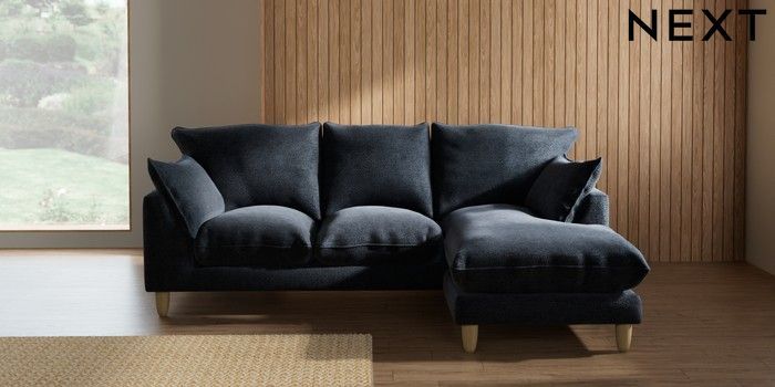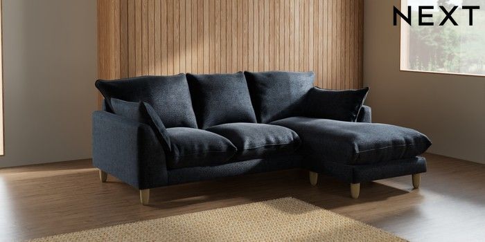 7.2.10 Noa Deep Relaxed Sit Small Sofa Chaise - Universal Boucle Chenille Dark Slate Blue High Leg - Light | Made Click here to use our website with more accessibility support, for example screen readers