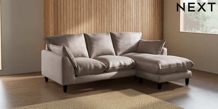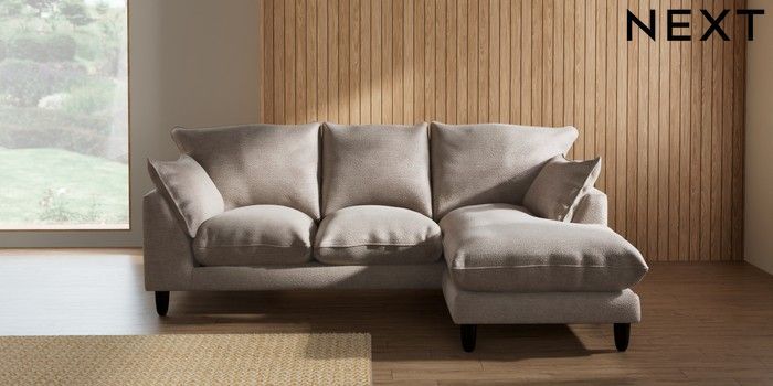 7.2.10 Noa Deep Relaxed Sit Small Sofa Chaise - Universal Boucle Chenille Light Natural High Leg - Dark | Made Click here to use our website with more accessibility support, for example screen readers