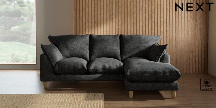 7.2.10 Noa Deep Relaxed Sit Small Sofa Chaise - Universal Boucle Weave Easy Clean Charcoal Grey High Leg - Light | Made Click here to use our website with more accessibility support, for example screen readers