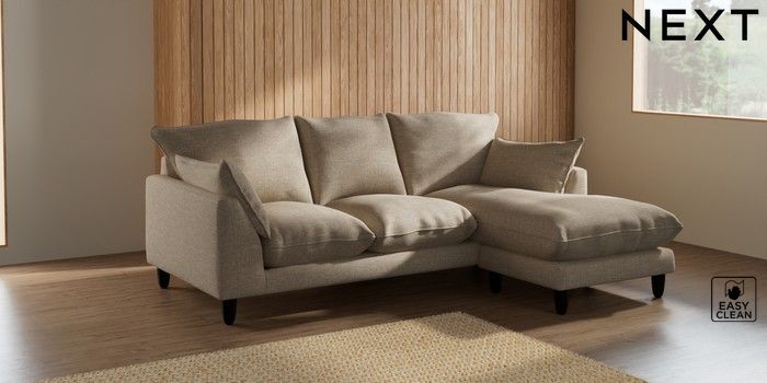 7.2.10 Noa Deep Relaxed Sit Small Sofa Chaise - Universal Boucle Weave Easy Clean Dark Natural High Leg - Dark | Made Click here to use our website with more accessibility support, for example screen readers