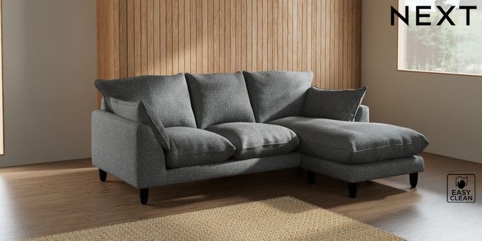 7.2.10 Noa Deep Relaxed Sit Small Sofa Chaise - Universal Chunky Boucle Easy Clean Mid Grey High Leg - Dark | Made Click here to use our website with more accessibility support, for example screen readers