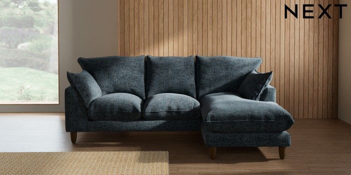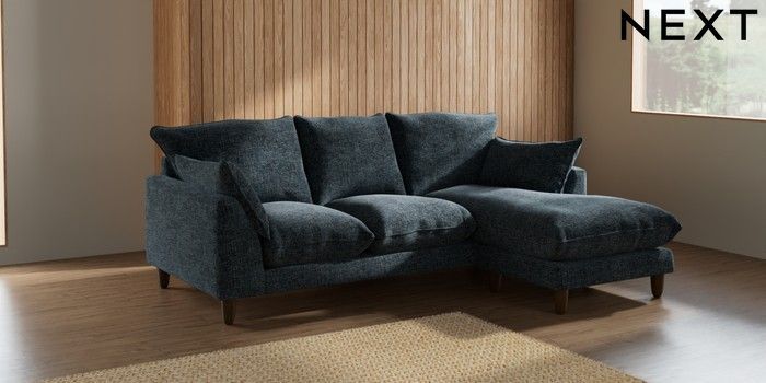 7.2.10 Noa Deep Relaxed Sit Small Sofa Chaise - Universal Chunky Chenille Dark Navy Blue High Leg - Mid | Made Click here to use our website with more accessibility support, for example screen readers