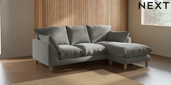 7.2.10 Noa Deep Relaxed Sit Small Sofa Chaise - Universal Chunky Chenille Light Grey High Leg - Light | Made Click here to use our website with more accessibility support, for example screen readers