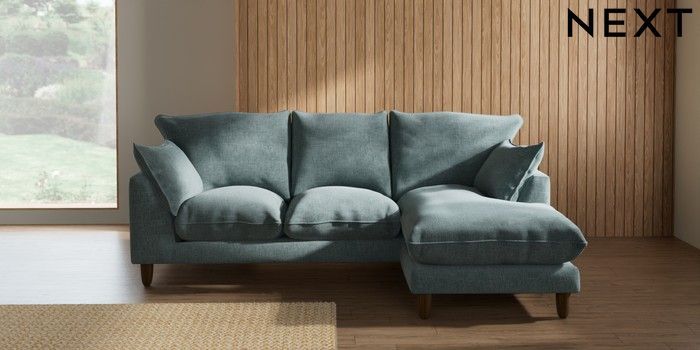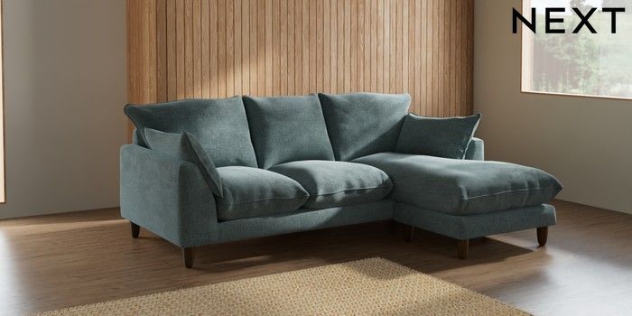 7.2.10 Noa Deep Relaxed Sit Small Sofa Chaise - Universal Chunky Chenille Light Teal Green High Leg - Mid | Made Click here to use our website with more accessibility support, for example screen readers