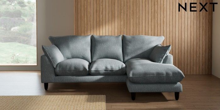 7.2.10 Noa Deep Relaxed Sit Small Sofa Chaise - Universal Chunky Weave Mid Blue High Leg - Dark | Made Click here to use our website with more accessibility support, for example screen readers