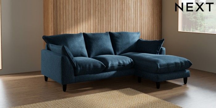 7.2.10 Noa Deep Relaxed Sit Small Sofa Chaise - Universal Cotswold Chenille Dark Blue High Leg - Dark | Made Click here to use our website with more accessibility support, for example screen readers