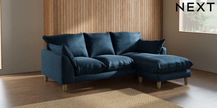 7.2.10 Noa Deep Relaxed Sit Small Sofa Chaise - Universal Cotswold Chenille Dark Blue High Leg - Light | Made Click here to use our website with more accessibility support, for example screen readers