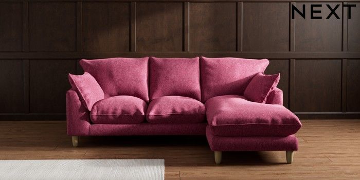 7.2.10 Noa Deep Relaxed Sit Small Sofa Chaise - Universal Cotswold Chenille Dark Raspberry Pink High Leg - Light | Made Click here to use our website with more accessibility support, for example screen readers