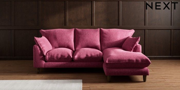 7.2.10 Noa Deep Relaxed Sit Small Sofa Chaise - Universal Cotswold Chenille Dark Raspberry Pink High Leg - Mid | Made Click here to use our website with more accessibility support, for example screen readers