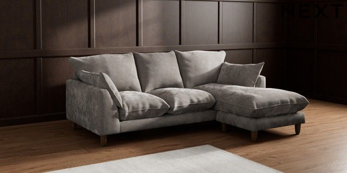7.2.10 Noa Deep Relaxed Sit Small Sofa Chaise - Universal Distressed Velour French Grey High Leg - Mid | Made Click here to use our website with more accessibility support, for example screen readers