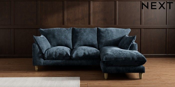 7.2.10 Noa Deep Relaxed Sit Small Sofa Chaise - Universal Distressed Velour Midnight Blue High Leg - Light | Made Click here to use our website with more accessibility support, for example screen readers