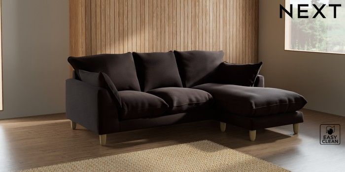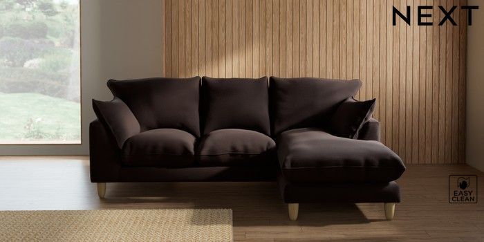 7.2.10 Noa Deep Relaxed Sit Small Sofa Chaise - Universal Fine Chenille Easy Clean Chocolate Brown High Leg - Light | Made Click here to use our website with more accessibility support, for example screen readers