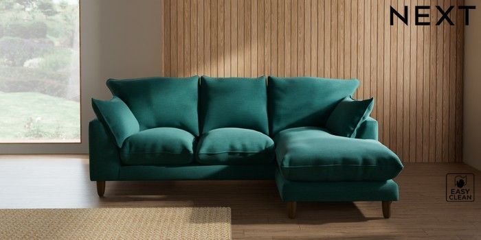 7.2.10 Noa Deep Relaxed Sit Small Sofa Chaise - Universal Fine Chenille Easy Clean Dark Juniper Green High Leg - Mid | Made Click here to use our website with more accessibility support, for example screen readers