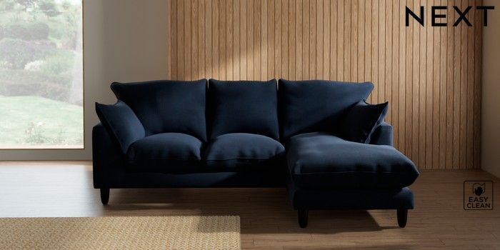 7.2.10 Noa Deep Relaxed Sit Small Sofa Chaise - Universal Fine Chenille Easy Clean Dark Navy Blue High Leg - Dark | Made Click here to use our website with more accessibility support, for example screen readers