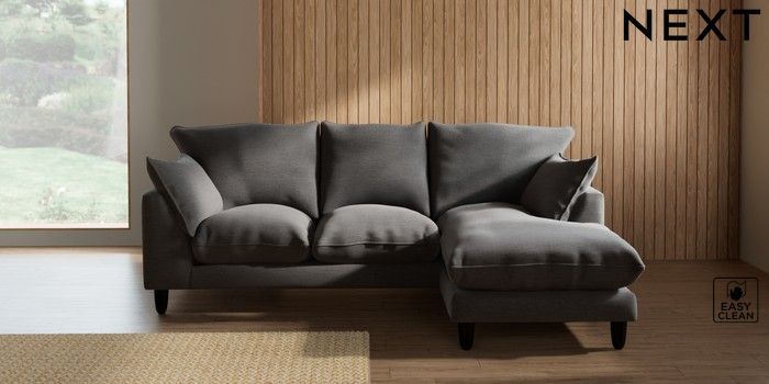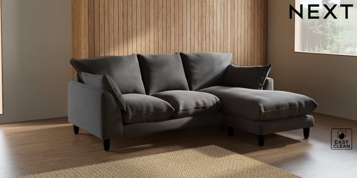 7.2.10 Noa Deep Relaxed Sit Small Sofa Chaise - Universal Fine Chenille Easy Clean Dark Smoke Grey High Leg - Dark | Made Click here to use our website with more accessibility support, for example screen readers