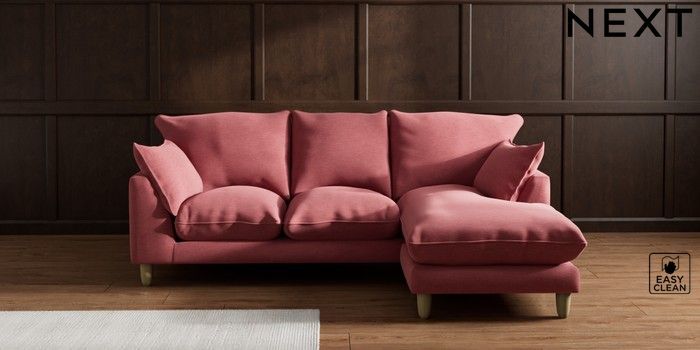 7.2.10 Noa Deep Relaxed Sit Small Sofa Chaise - Universal Fine Chenille Easy Clean Mid Pink High Leg - Light | Made Click here to use our website with more accessibility support, for example screen readers