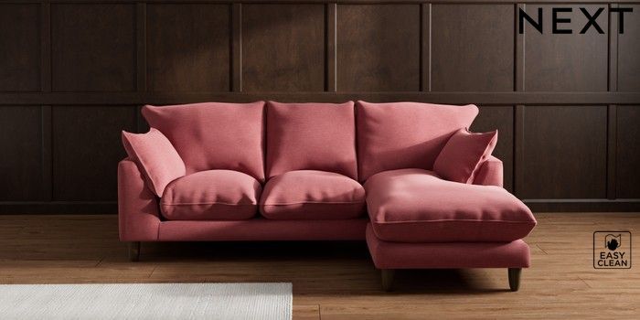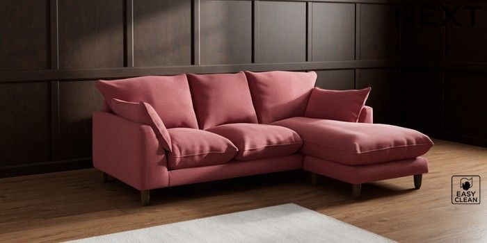 7.2.10 Noa Deep Relaxed Sit Small Sofa Chaise - Universal Fine Chenille Easy Clean Mid Pink High Leg - Mid | Made Click here to use our website with more accessibility support, for example screen readers