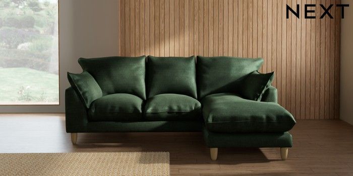 7.2.10 Noa Deep Relaxed Sit Small Sofa Chaise - Universal Luxe Chenille Dark Green High Leg - Light | Made Click here to use our website with more accessibility support, for example screen readers