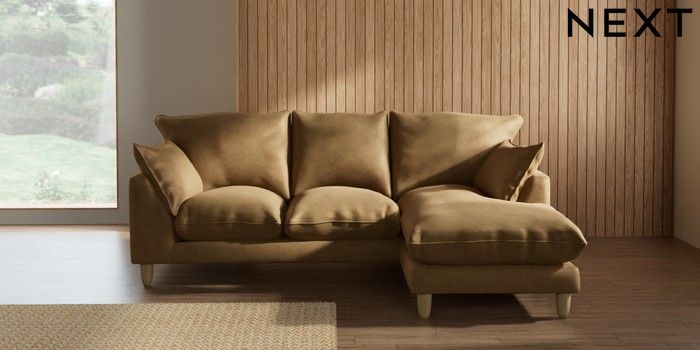 7.2.10 Noa Deep Relaxed Sit Small Sofa Chaise - Universal Luxe Chenille Honey Yellow High Leg - Light | Made Click here to use our website with more accessibility support, for example screen readers