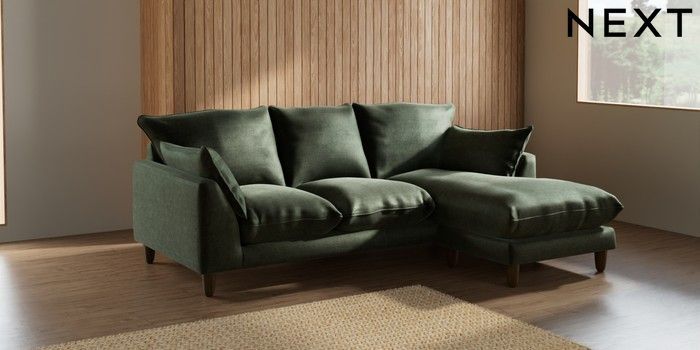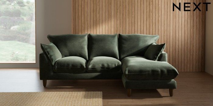 7.2.10 Noa Deep Relaxed Sit Small Sofa Chaise - Universal Luxe Chenille Mid Green High Leg - Mid | Made Click here to use our website with more accessibility support, for example screen readers